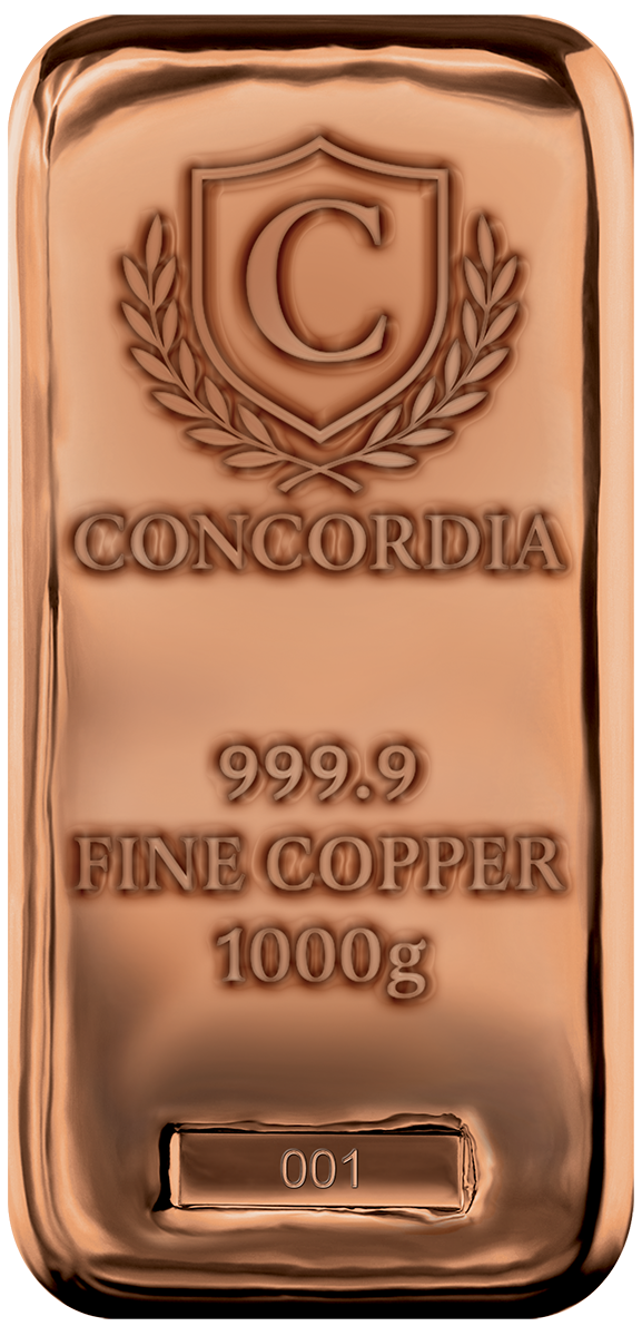 Copper bar Cu 999.9 CONCORDIA – 1 kg Cast bar,